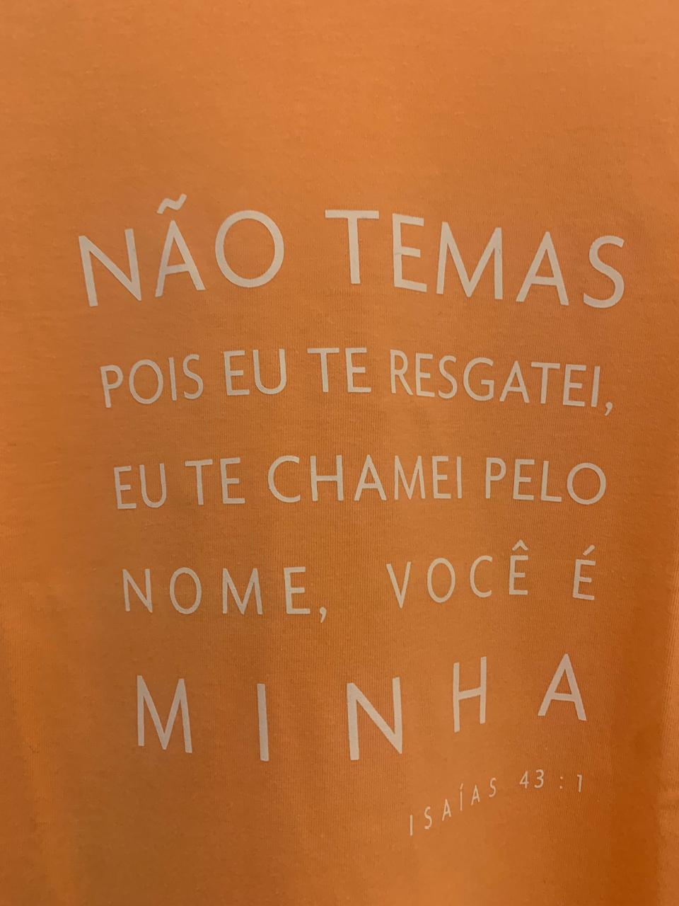 Camiseta Feminina Laranja – “Não Temas, Pois Eu Te Resgatei” (Isaías 43:1)