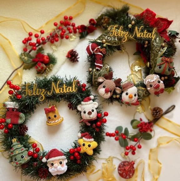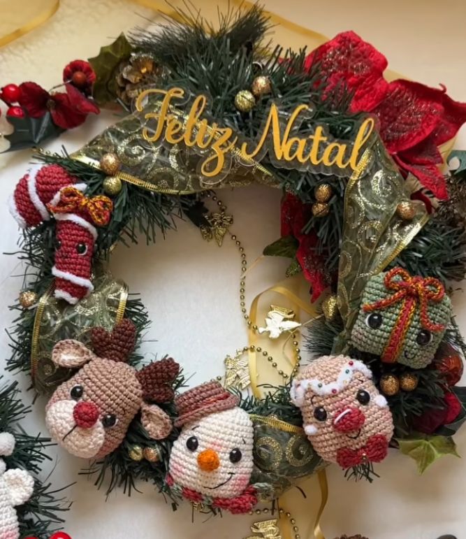 Feita à mão com riqueza de detalhes, ela traz toda a magia e o aconchego da data mais especial do ano. Decorada com miniaturas natalinas em feltro, laços delicados, pinhas e frutinhas vermelhas, essa guirlanda é perfeita para dar boas-vindas com estilo e alegria.